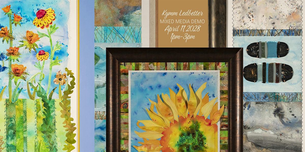 Join us in person for a private Mixed Media Demonstration led by artist Kymm Ledbetter! Get ready to explore creative techniques and see how different materials come to life in Kymm's unique style mixing watercolor, paper, fabric, sewing, fused glass and more. Whether you're an art enthusiast or just curious, this demo is a fun chance to learn and get inspired.