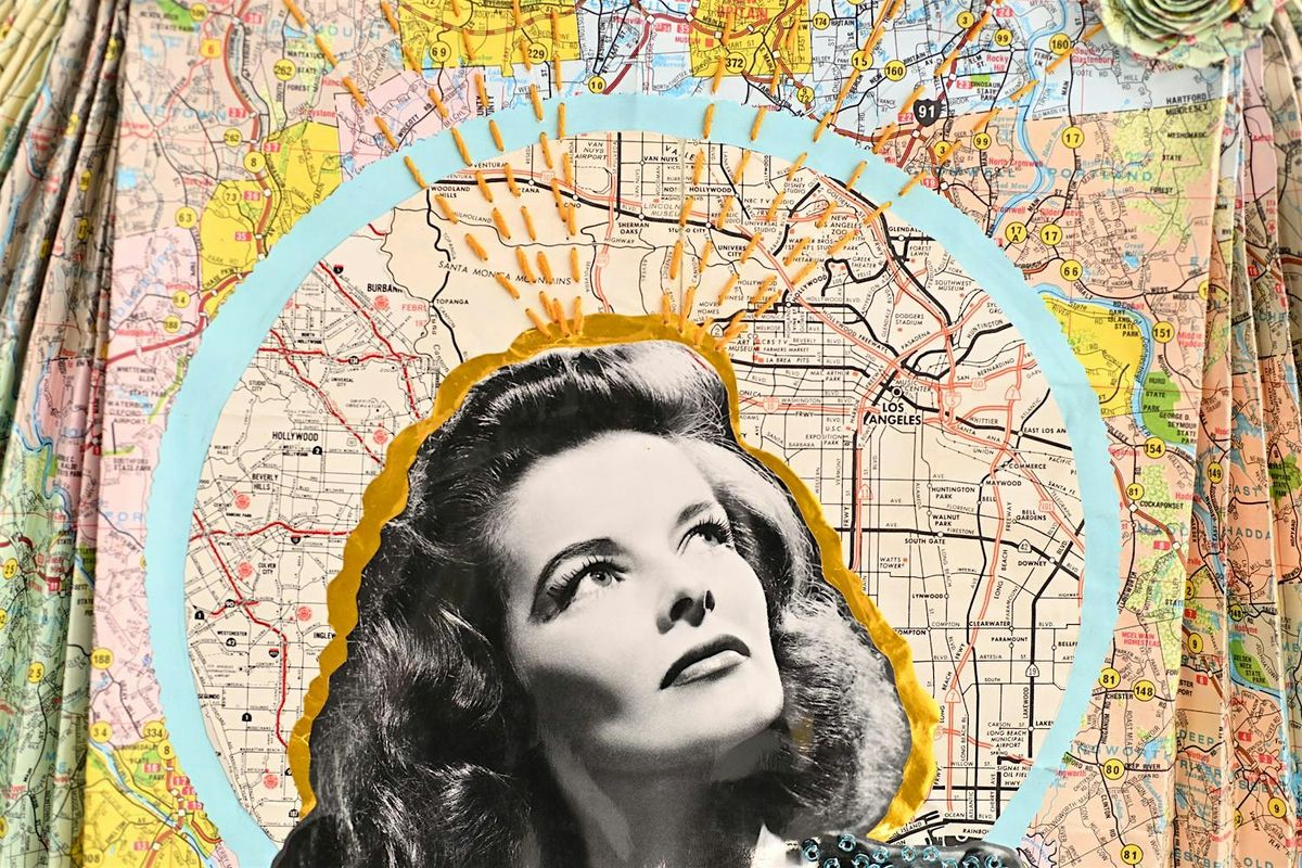 Create a unique portrait of your favorite Golden Age movie star with mixed media and collage. Using an oval watercolor paper base, students will create background atmosphere with watercolor or gouache and then compose a layered nest of textures and colors to highlight a beautiful face. Participants are free to bring their own black and white photos or select from a huge supply of historical and contemporary resources. Students will have access to endless ephemera and may choose to augment these compositions with embroidery, costume jewelry and other small natural and print elements. These beautiful compositions will be suitable for framing. See some samples and student work in progress below.
