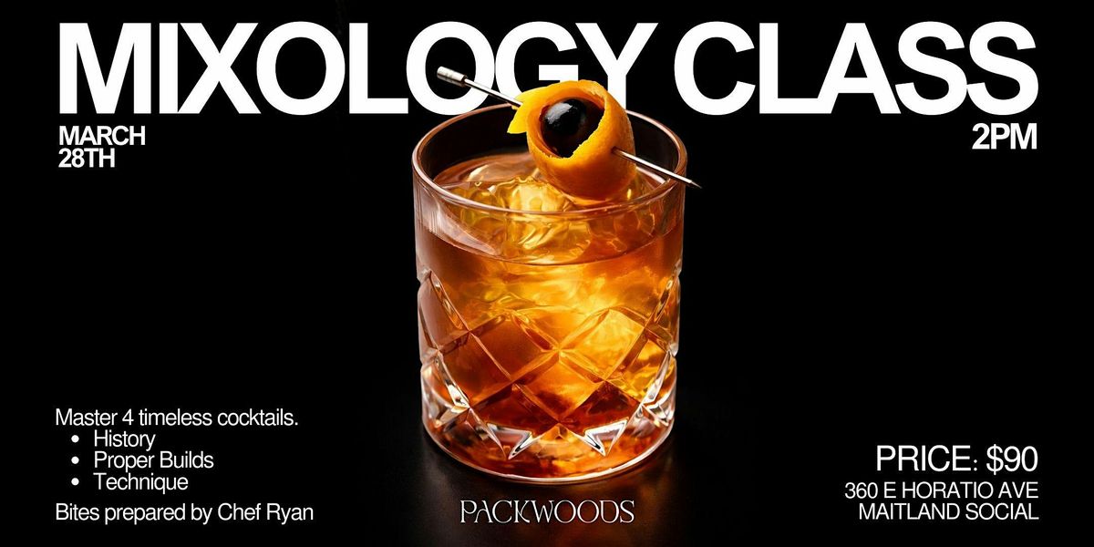 Shake, stir, and sip your way through an afternoon of cocktail craftsmanship at Packwoods. Join us on March 28th at 2:00 PM for an interactive Mixology Class where you'll learn the art behind four timeless cocktails.