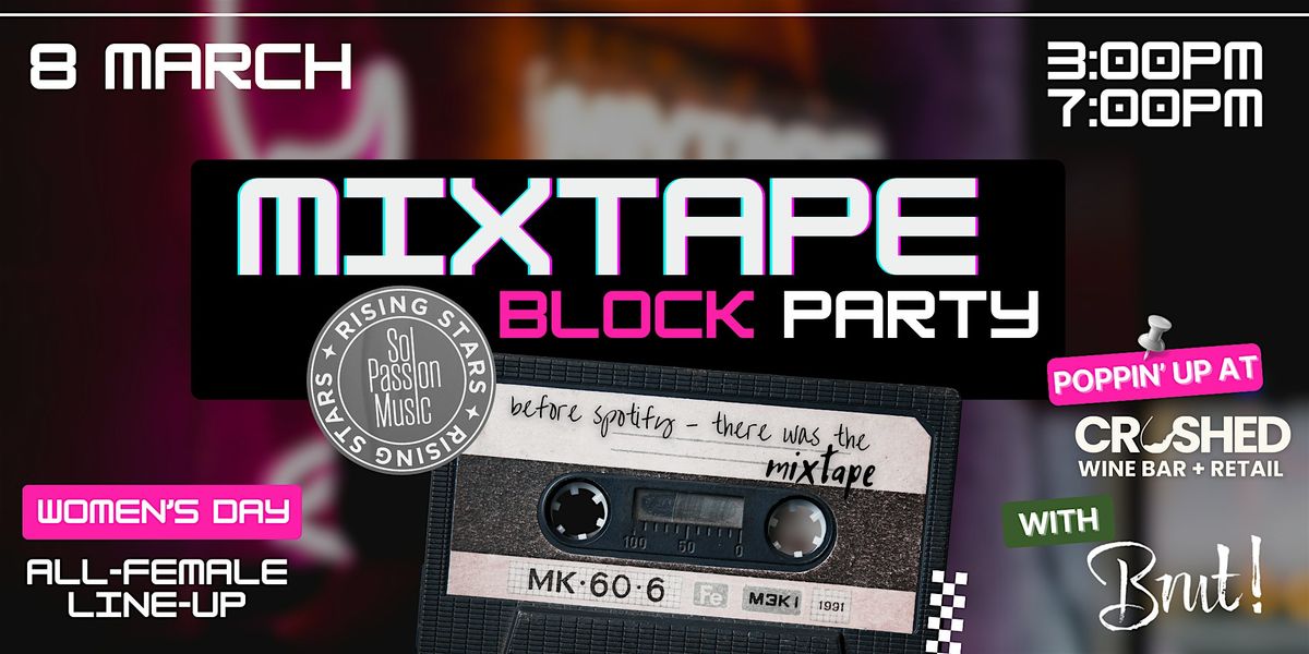 MIXTAPE takes over Second Street on International Women’s Day — spanning two neighbouring venues, BRUT and Crushed Wine, for a one-day block party in Sai Ying Pun.