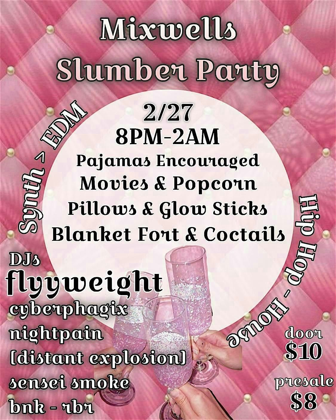 As we near the end of the colder months, Mixwells would like to invite you to cozy up at our Slumber Party! Join us on FEB 27, 8PM-2AM