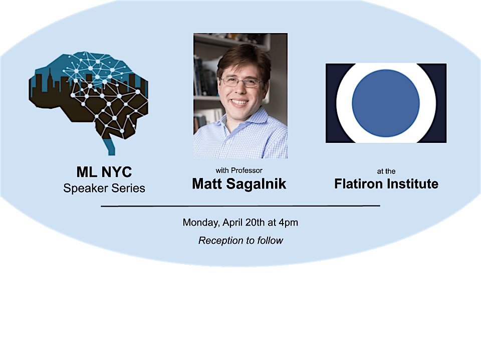 The ML in NYC Speaker Series + Happy Hour is excited to host Matt Salganik from Princeton University as our April speaker! His talk will take place Monday, April 20th at 4pm at the Flatiron Institute. As always, there will be a reception afterward for all attendees.
