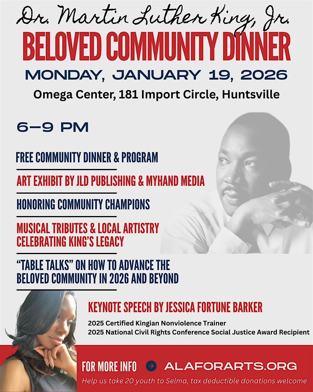 Join AL Association for the Arts and partners as we celebrate the legacy of Dr. Martin Luther King, Jr. for a free Beloved Community Dinner and Program featuring: