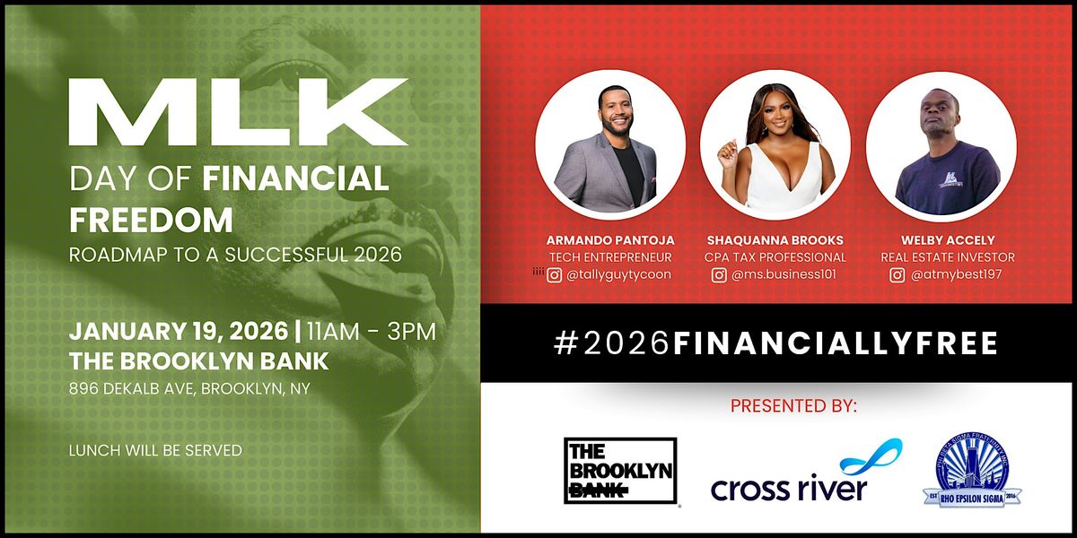 Please join us at The Brooklyn Bank for a day of learning, networking and planning as we celebrate with our community the memory of one of Dr. King's dreams: Financial Freedom!!
