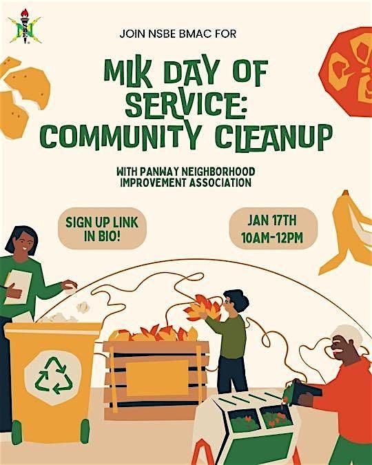 Join NSBE BMAC for an awesome in-person service event where we come together to spruce up our neighborhood! It's all about giving back, networking with peers, and making a difference on MLK Day. Grab your gloves and good vibes – let’s clean, connect, and celebrate Dr. King's legacy in the best way possible!