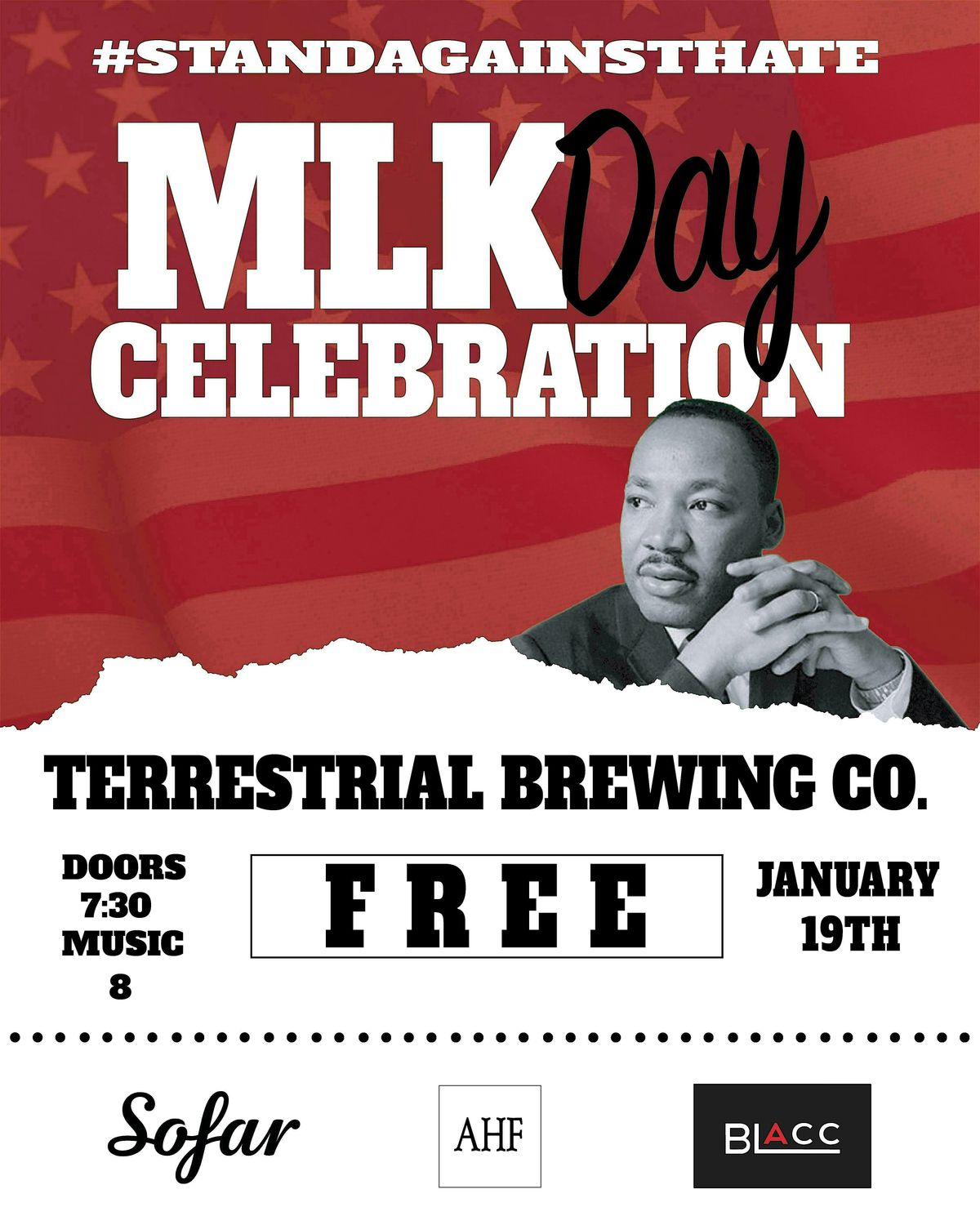 Welcome to the MLK Day Sofar X AHF Show at Terrestrial Brewing Company! Get ready for an unforgettable night of live music on January 19, 2026. Doors 7:30 PM Show 8:00 PM (Eastern Time). Join us for a celebration of music, community, and good vibes. Let's honor MLK's legacy together and stand against hate, see you there!