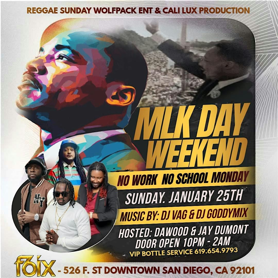 MLK Day Weekend No Work No School Monday Reggae Sunday.