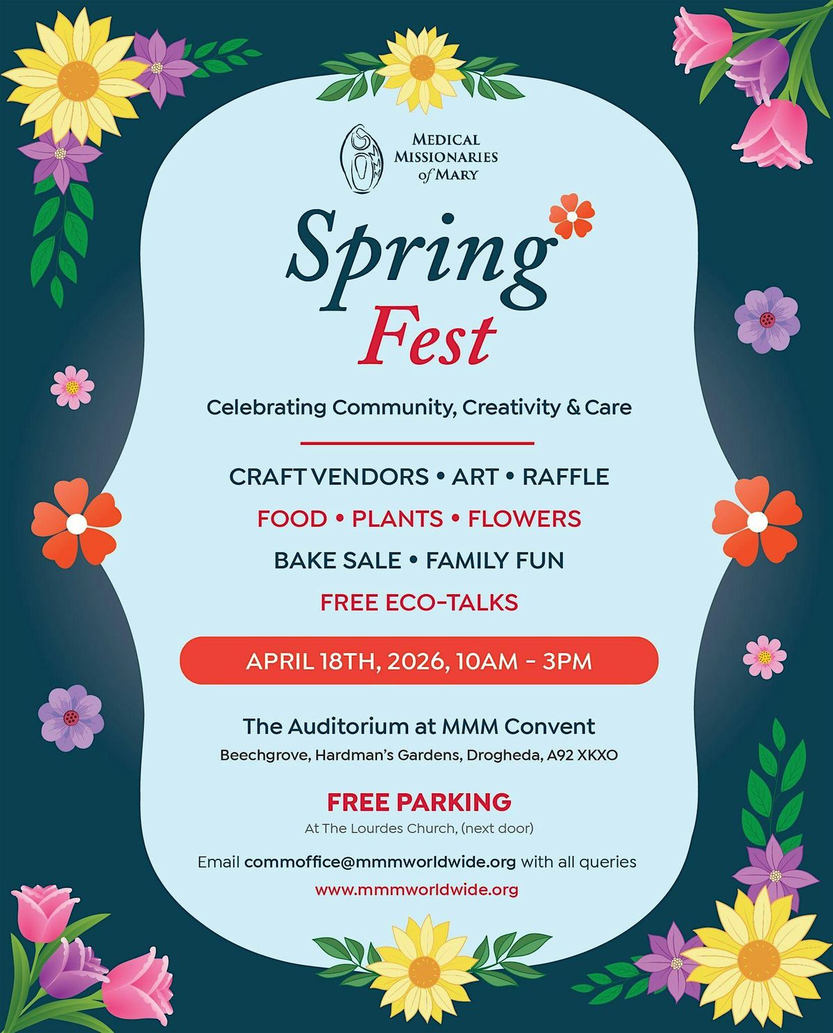 We are delighted to invite you to Spring Fest 2026, on Saturday 18 April from 10am to 3pm at the Auditorium in the MMM Convent, Beechgrove, Drogheda.