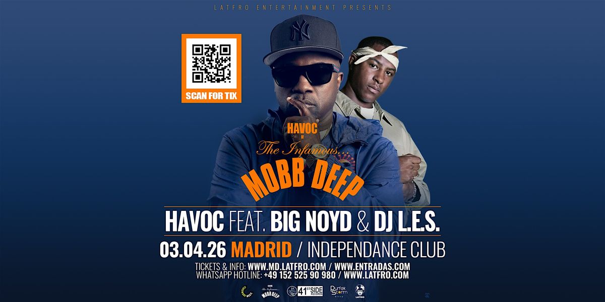 Mobb Deep feat. Havoc along with Big Noyd & DJ L.E.S. are set to perform live in Madrid! Join us at Independance Club on April 3rd for an unforgettable night of music.