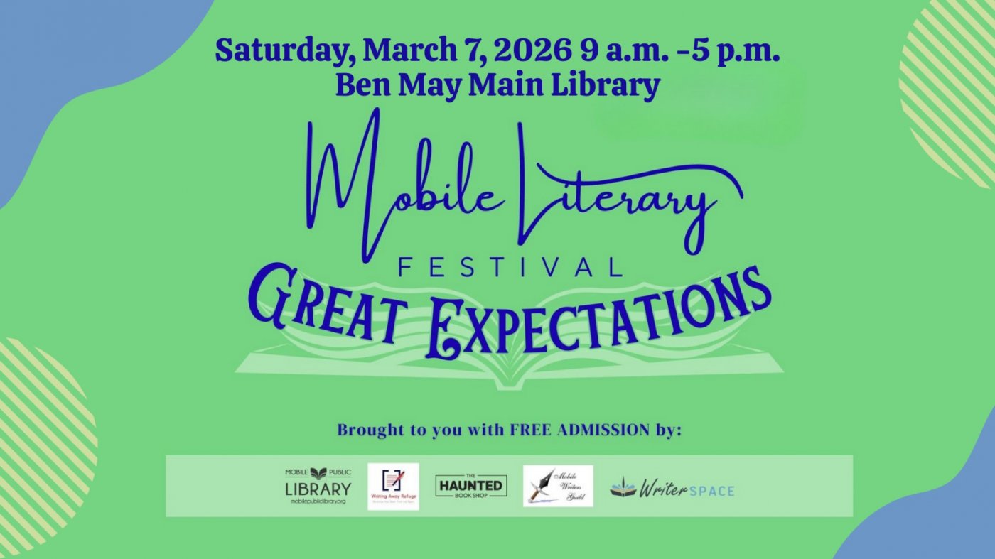 Aspiring and accomplished writers and readers of all genres are welcome at the 2026 Mobile Literary Festival GREAT EXPECTATIONS!