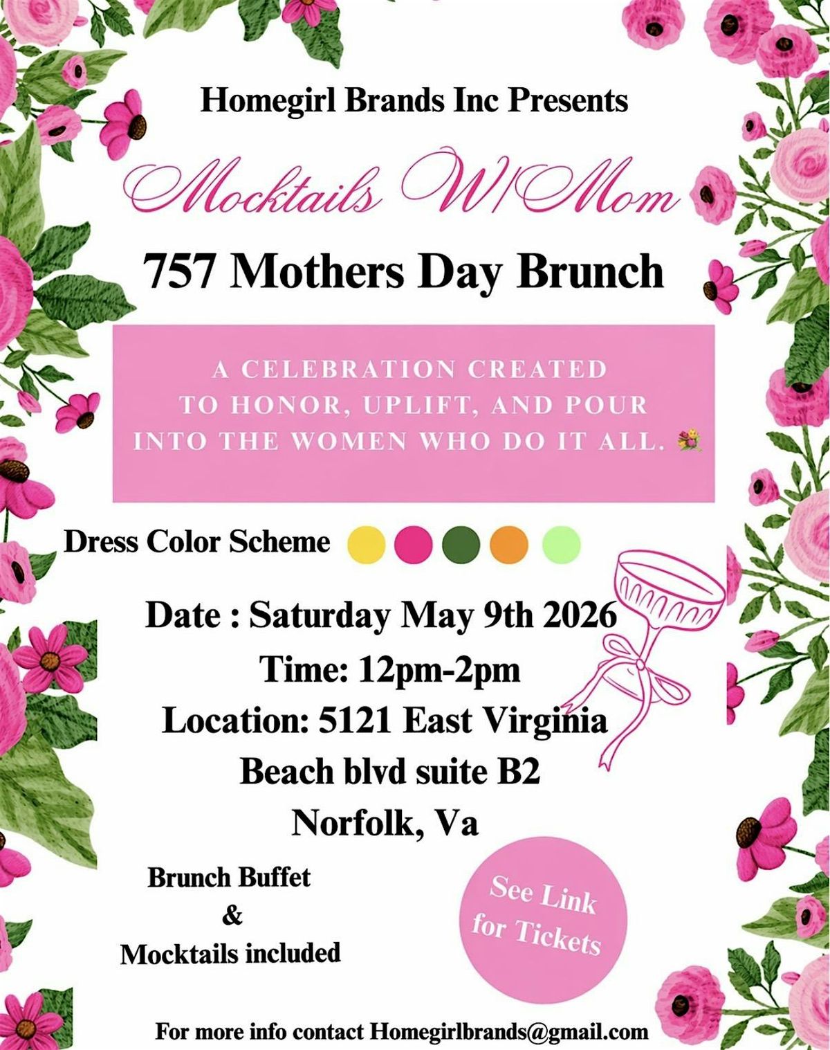 Grab your tickets and join us in 757 for a Mother’s Day you won’t forget! 💐✨Brunch Menu: