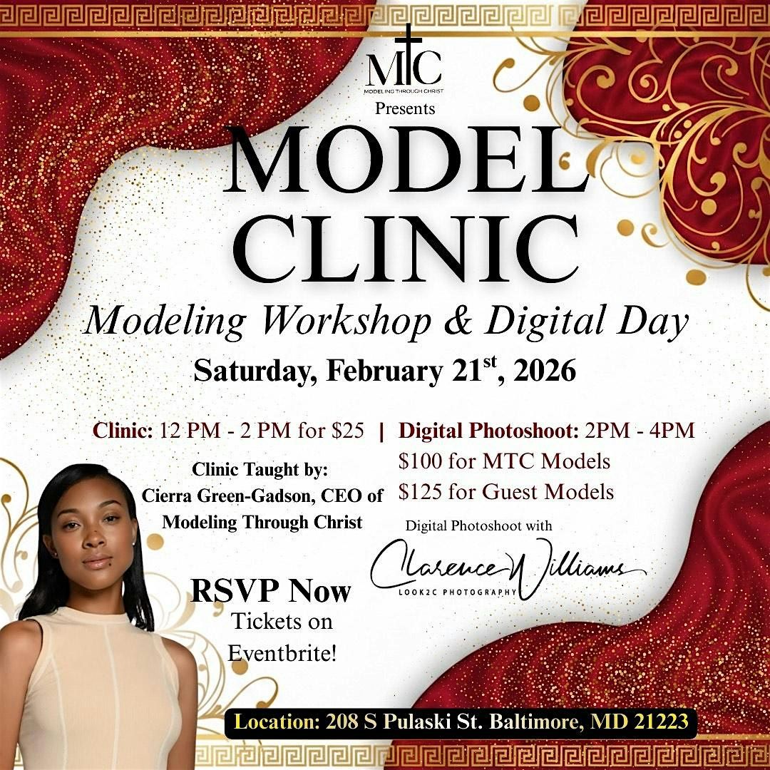 An intimate, refreshing Model Clinic revealing industry truths & insider gems followed by professional digitals. DMV your up
