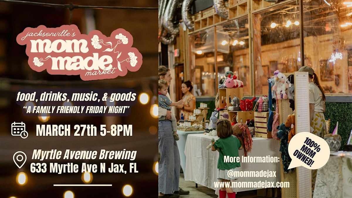 Join us for the Mom Made Jax Farmer’s Market, a vibrant, community-focused market built by moms, for Jacksonville! Shop local, support small businesses, and spend the evening connecting with talented local makers, bakers, farmers, and entrepreneurs. This is one of Jacksonville’s most unique mom-owned markets, offering fresh foods, handmade goods, and a welcoming space for families.