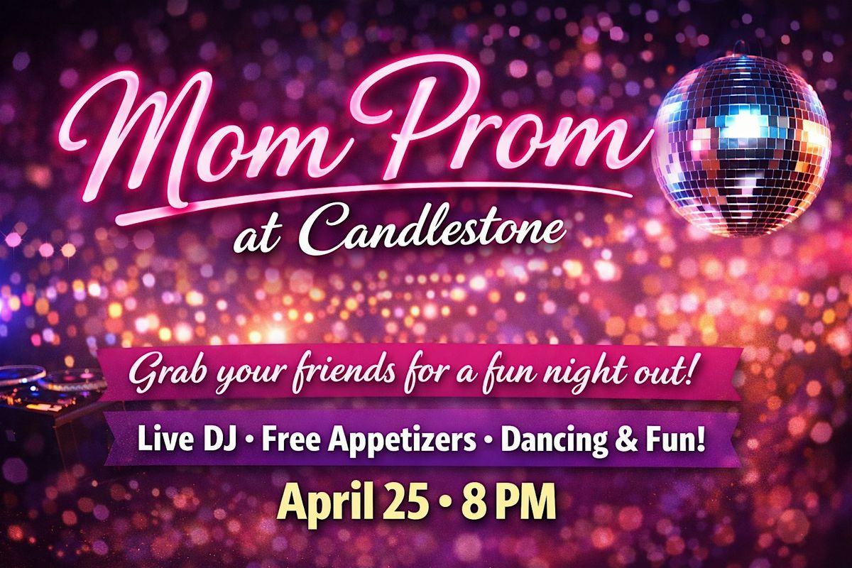 Grab your friends and get ready for a night out at Mom Prom at Candlestone. This adults-only evening is all about dressing up, hitting the dance floor, and enjoying a fun night with friends. A live DJ will keep the music going all night with a mix of throwback favorites and dance hits. Your ticket also includes complimentary appetizers, making it easy to relax, mingle, and celebrate the night together. Whether you go all out with prom attire or just come ready to have fun, Mom Prom is the perfect excuse for a memorable night out. Join us April 25 at 8 PM.