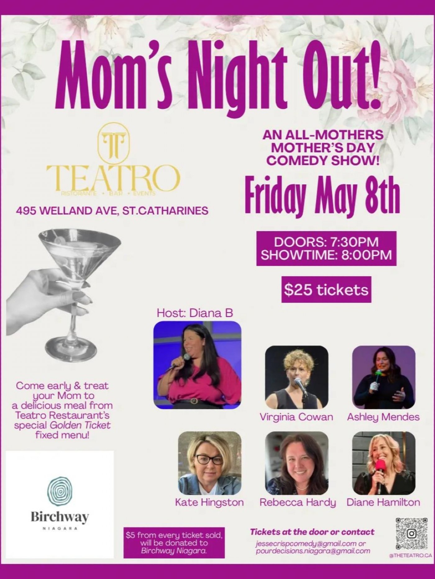 Moms Night Out is an all Mothers, Mothers day standup comedy showcase, featuring 6 of the areas Funniest Mothers. In support of BIRCHWAY NIAGARA.
