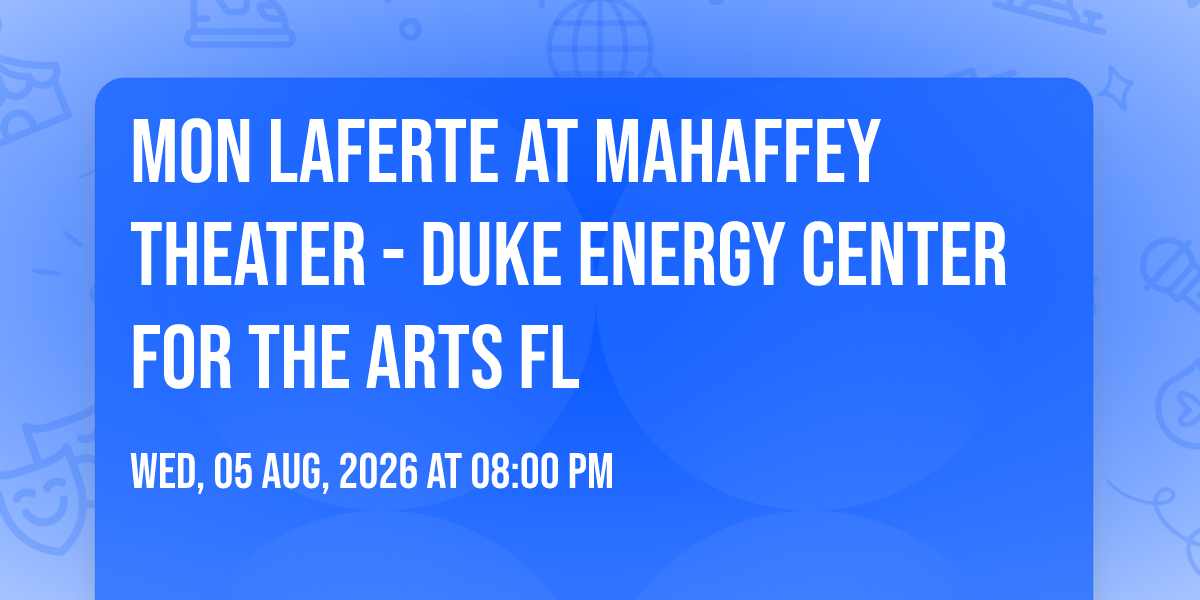 🎉 Welcome to Mon Laferte at Mahaffey Theater - Duke Energy Center for the Arts FL, where the impossible becomes possible and dreams take flight! 🏛️ Join us at Mahaffey Theater - Duke Energy Center for the Arts FL in the heart of Saint Petersburg, FL for an event that will redefine your expectations. 📅 On August 5th, 2026 at 08:00 PM, witness the transformation of space and time into something truly magical. ✨ It's a curated experience combining the best of innovation, entertainment, and community spirit, creating moments that will be remembered for years to come. Whether you're a first-time visitor or a seasoned enthusiast, prepare to be amazed. 🎊 Book now to ensure your place in this unforgettable experience!