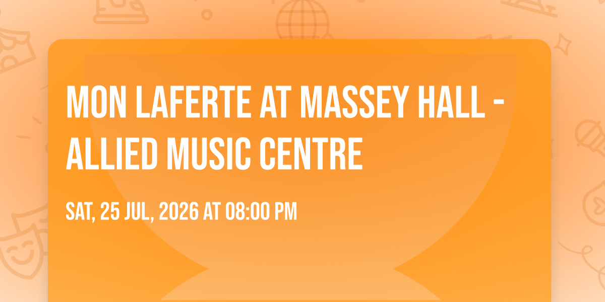 π Welcome to Mon Laferte at Massey Hall - Allied Music Centre, where dreams come alive and possibilities are endless! ποΈ Join us at Massey Hall - Allied Music Centre in the heart of Toronto, ON for an event that defies expectations. π On July 25th, 2026 at 08:00 PM, be part of something truly extraordinary as we bring together innovation, entertainment, and pure magic. β¨ Every aspect has been carefully designed to ensure an unforgettable experience for all our guests. Whether you're seeking adventure, inspiration, or simply a break from the ordinary, this event promises to deliver beyond your wildest dreams. π Prepare for a journey into the extraordinary!