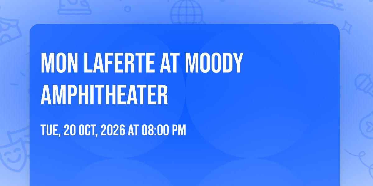 β¨ Enter a world of endless possibilities at Mon Laferte at Moody Amphitheater, where every moment tells a story! ποΈ The stunning Moody Amphitheater in vibrant Austin, TX transforms into a realm of wonder on October 20th, 2026 at 08:00 PM. π They have crafted an experience that goes beyond the ordinary, combining elements of surprise, delight, and pure entertainment. Every detail has been thoughtfully considered to ensure your journey with us is nothing short of extraordinary. π― Join fellow adventure seekers and memory makers in this celebration of imagination and innovation. π Reserve your spot today and be part of something truly special!