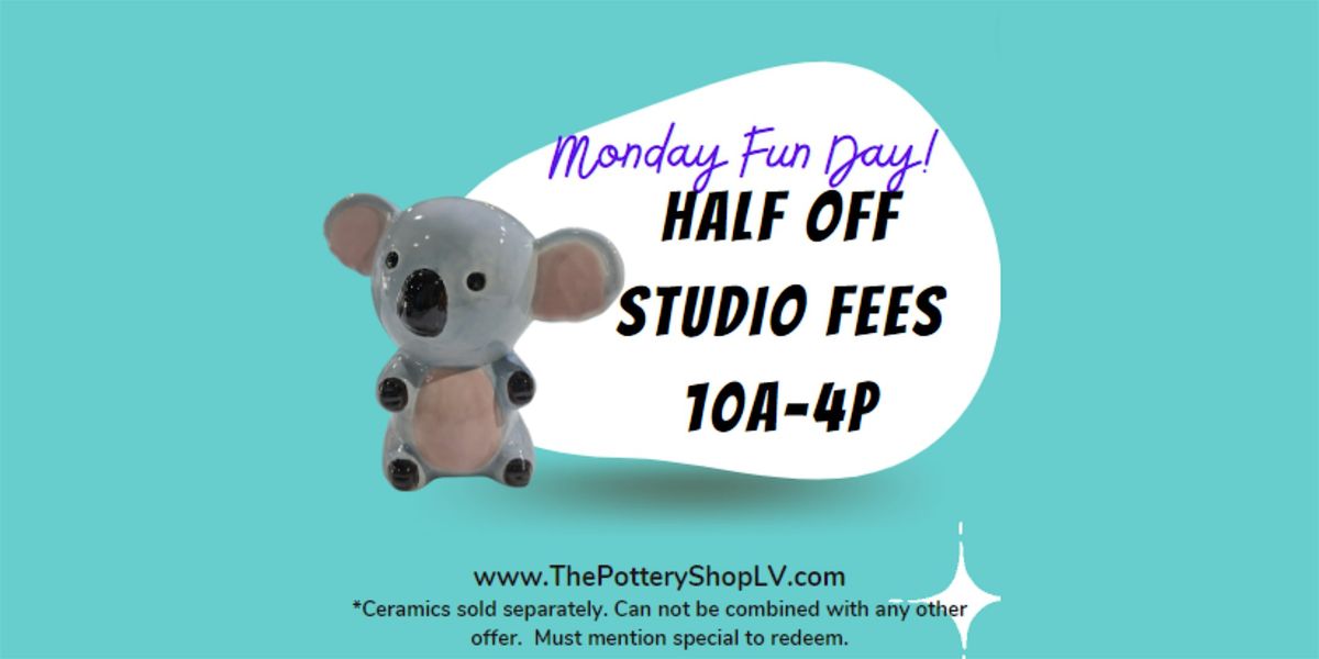 Monday Fun Day - enjoy half off studio fees at The Pottery Shop from 10a-4pm!