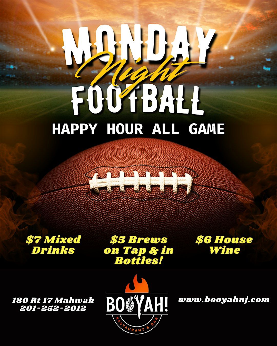 Come join us at Booyah! for an electrifying evening of football madness. Get ready to cheer on your favorite team, indulge in delicious snacks, and enjoy the company of fellow sports enthusiasts. Whether you're a die-hard fan or just looking for a good time, Monday Night Football at Booyah! is the place to be. Don't miss out on the action - mark your calendars and get ready for a night of touchdowns, tackles, and triumphs!