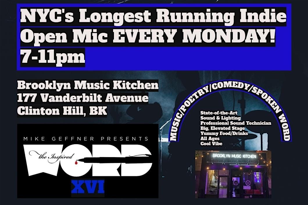 EVERY Monday Night, the independent and internationally known InspiredWordNYC presents NYC's hottest open mic & showcase at the electric Brooklyn Music Kitchen in Clinton Hill, the coolest venue in the BK.