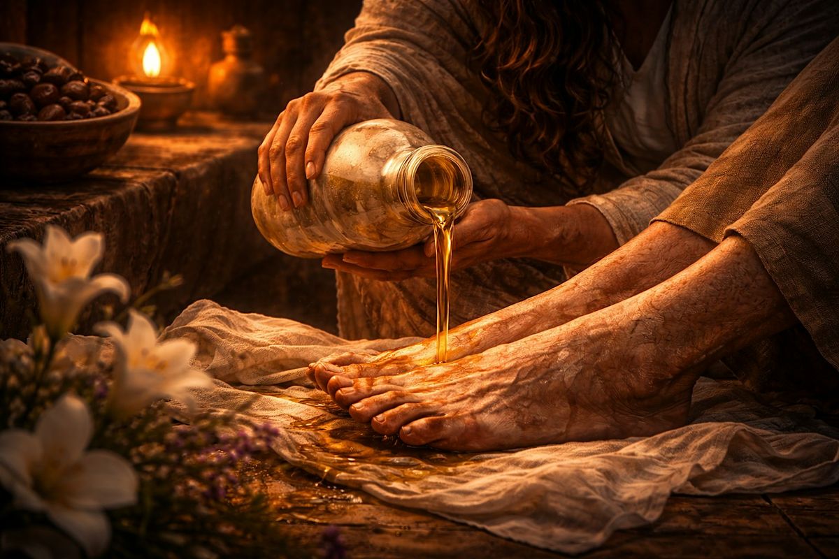 Journey with us to the cross through Holy Week. As Mary of Bethany washes Jesus' feet with oil, the betrayal is already at hand.