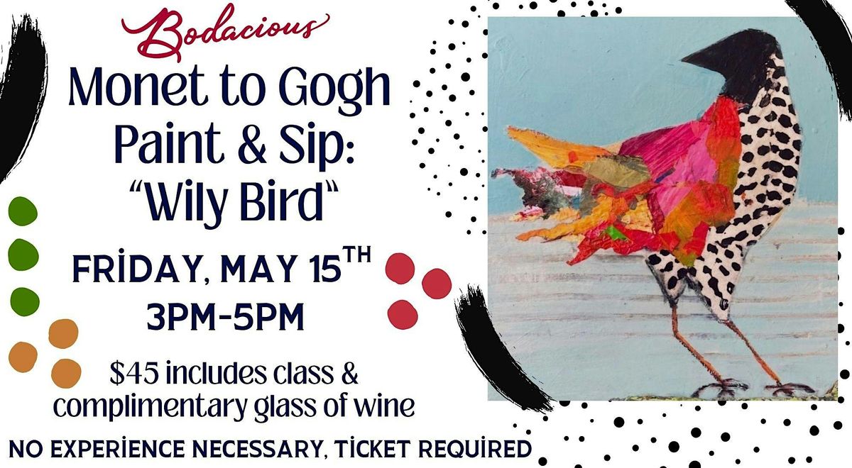 Get ready for a night of color, creativity, and a little bit of whimsy at our “Wily Bird” Paint & Sip! This vibrant, abstract-inspired bird is full of personality, just like the artists painting it.