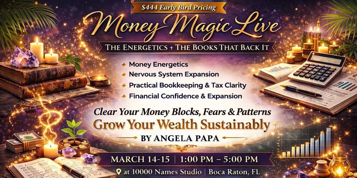 A 2-day immersive experience blending money energetics, nervous system expansion, breathwork, and practical bookkeeping/tax foundations for spiritual entrepreneurs ready for aligned wealth.