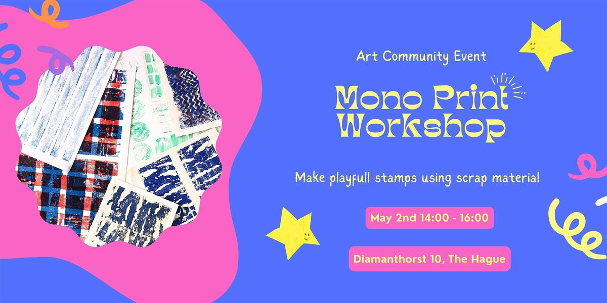 Let's get creative at our Mono Print Workshop! Join for a laid back session where you’ll learn how to make Mono Prints and by making your own stamps from scrap material. Cut up some boxes and use other materials to make paint stamps and create abstract prints! I will provide you with instructions, examples and inspiration, but you are more than free to create your own ideas. Bring your imagination and let's create some mono magic together!
