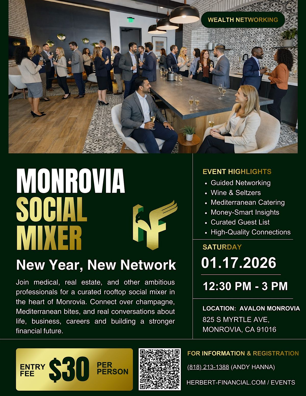 Step into an elevated afternoon of connection at the Monrovia Social Mixer—hosted in a relaxed lounge setting and built for professionals who value real relationships and real opportunity. This curated mixer brings together real estate investors, agents, and brokers, alongside medical professionals, including nurses, doctors, and dentists, for meaningful conversation, guided introductions, and high-quality networking.