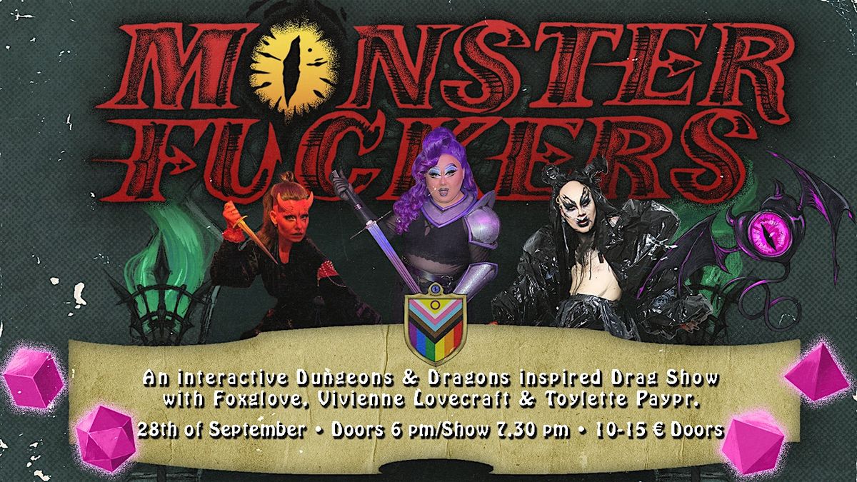 This evening is for all the queer nerds and fantasy lovers in Berlin. Get into your adventuring gear, cosplay or even your cutest LARP outfit and get to know other nerdy table tops, bottoms and versatile lovers of fantasy and drag. We will have fantasy/D&D/nerdy Pop-Quizzes, small games, a story told by your Dungeon Mistress that is unfolding through your decisions, a fantastic drag show and fantastic prizes to win!