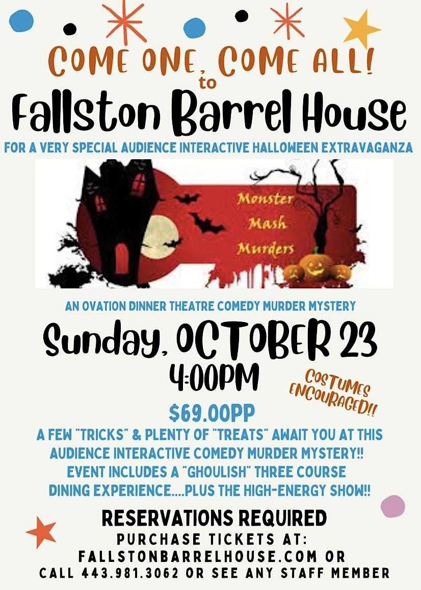 Make 2022’s Halloween extra special at this meeting of ghouls who turn deadly! You’ll laugh yourself to “death” during this AUDIENCE IMMERSIVE comedy M**der mystery! Join all of your favorite Halloween monsters, super heroes, and princesses who’ve come out to help stop a villain, named ‘X’, who is on the loose and wants to take over the world. Suspects abound with monsters to the left, mortals to the right, and detectives stuck in the middle with YOU as you help solve this hilarious comedy M**der mystery! Event starts at 4pm!
