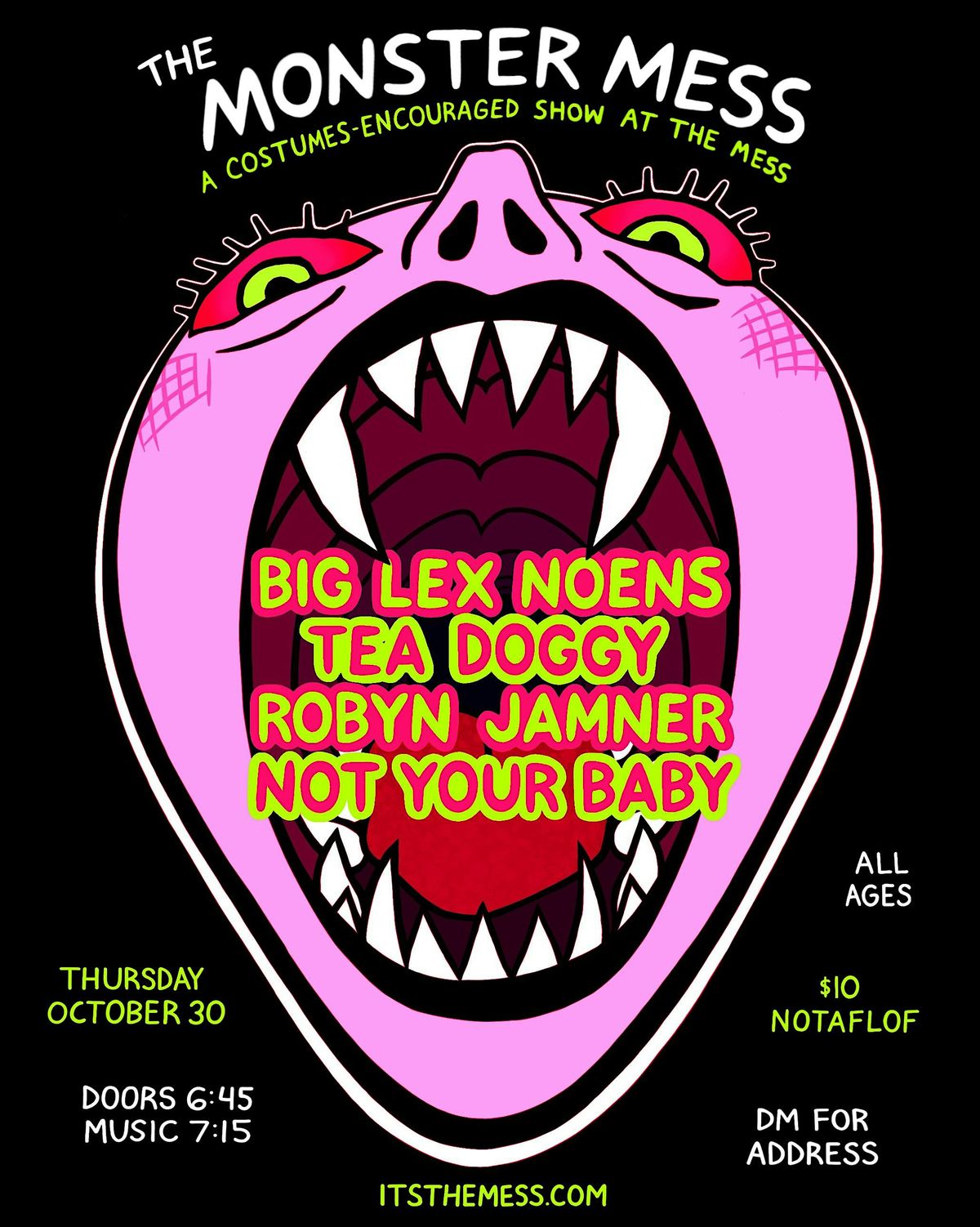 halloween show with live music from Tea Doggy, Big Lex Noens, Robyn Jamner and Not Your Baby