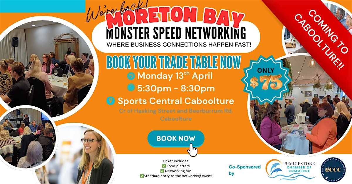 Get ready to supercharge your connections at the Monster Speed Networking Event — hosted by the Pumicestone Chamber of Commerce AND the Greater Caboolture Chamber of Commerce!