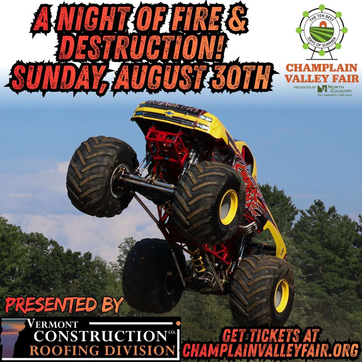 β¨ Experience the magic of Monster Truck - A Night of Fire and Destruction, where moments become memories that last a lifetime! ποΈ The iconic Champlain Valley Expo in Essex Junction, VT sets the perfect stage for an unforgettable celebration on August 29th, 2026 at 07:00 PM. π It's been a curated experience that brings together the best of entertainment and innovation, creating an atmosphere of wonder and excitement. From the moment you arrive, you'll be immersed in a world where the ordinary transforms into the extraordinary. π Book early to secure your place in what promises to be an event that will be talked about for years to come!http://maps.seatics.com/GeneralAdmissionEvent_2019-01-14_1230_SVGC_tn.gif