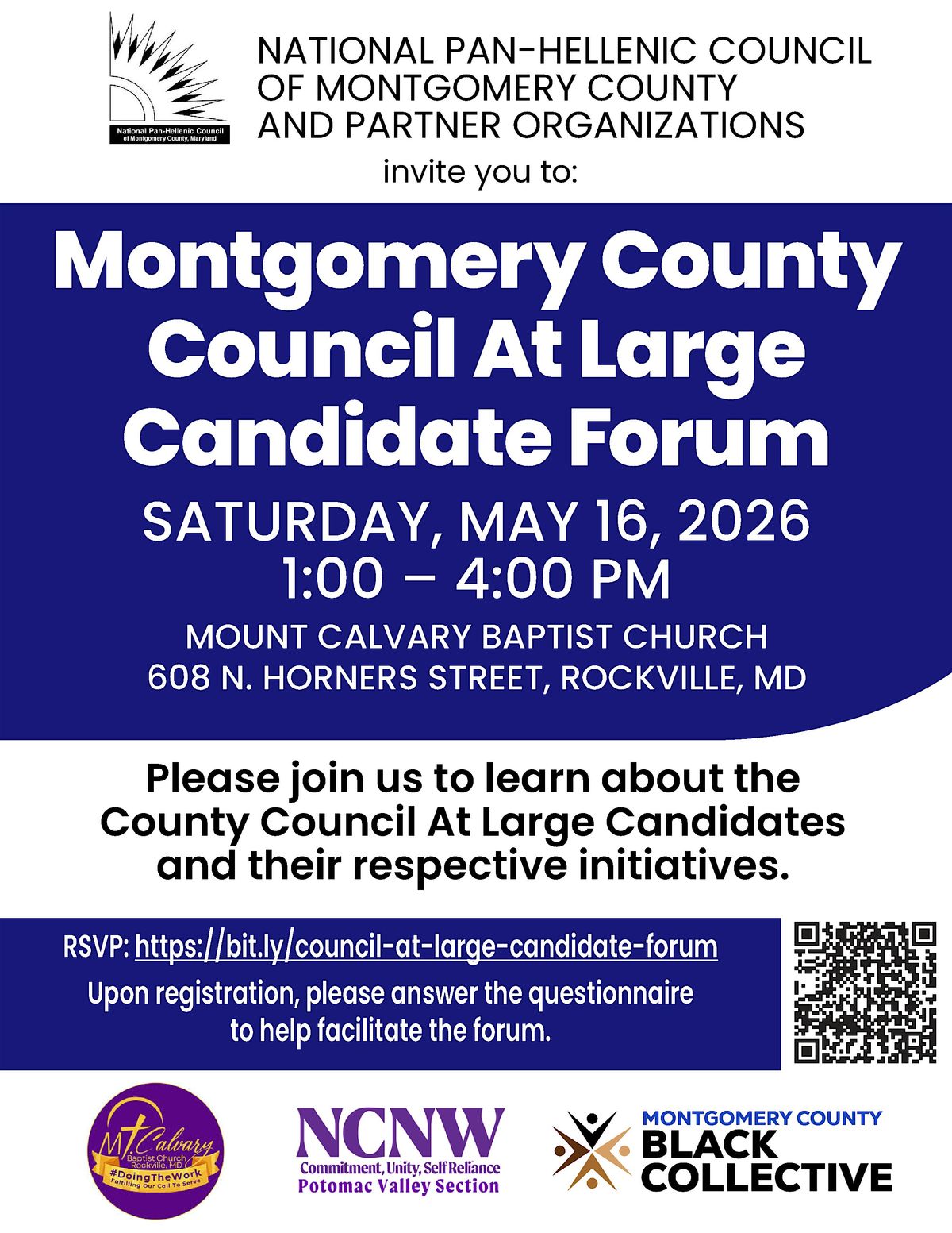 Montgomery County Council At Large Candidate Forum - Saturday, May 16, 2026, 1:00 PM - 4:00 PM