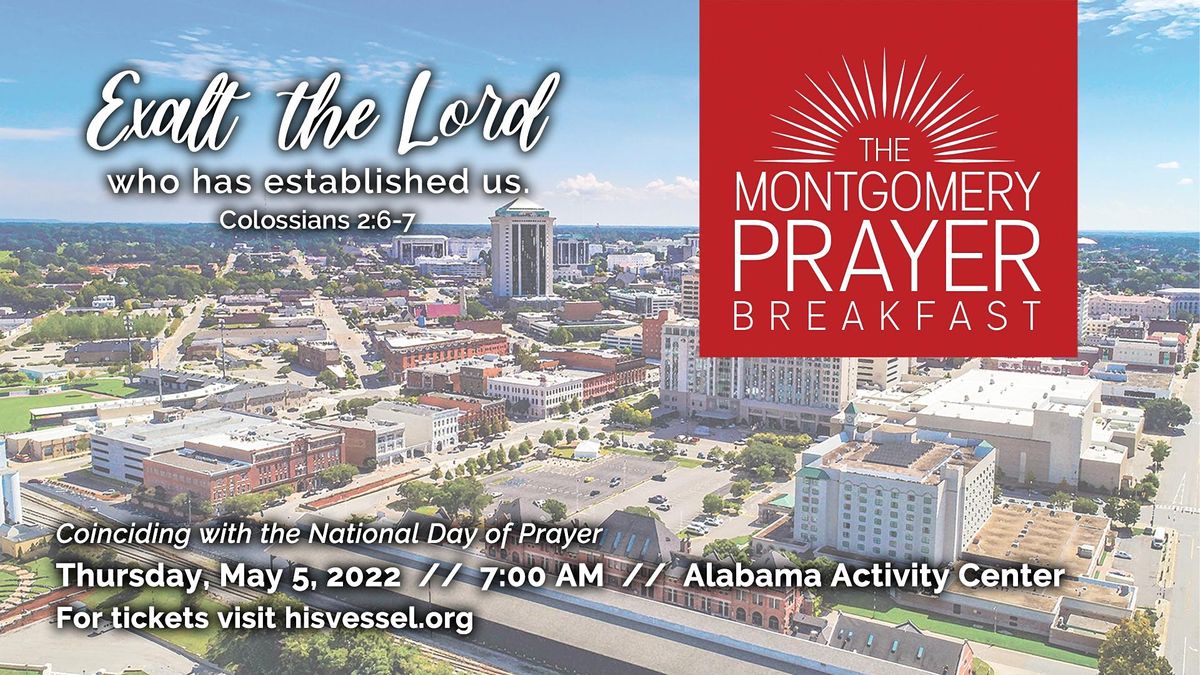 The 2022 Montgomery Prayer Breakfast is scheduled for May 5, at 7 am, in downtown Montgomery. His Vessel Ministries invites local citizens to join them on this day in a spirit of humility and prayer.