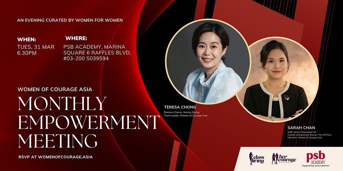 Welcome to our Monthly Empowerment Meeting for Women! Join us at PSB Academy City Campus: Main Wing for an inspiring gathering where women come together to support and uplift each other. This event is a safe space for women to share their stories, experiences, and wisdom. Connect with like-minded individuals, participate in empowering discussions, and leave feeling motivated and empowered. Don't miss out on this opportunity to grow, learn, and be inspired. See you there!