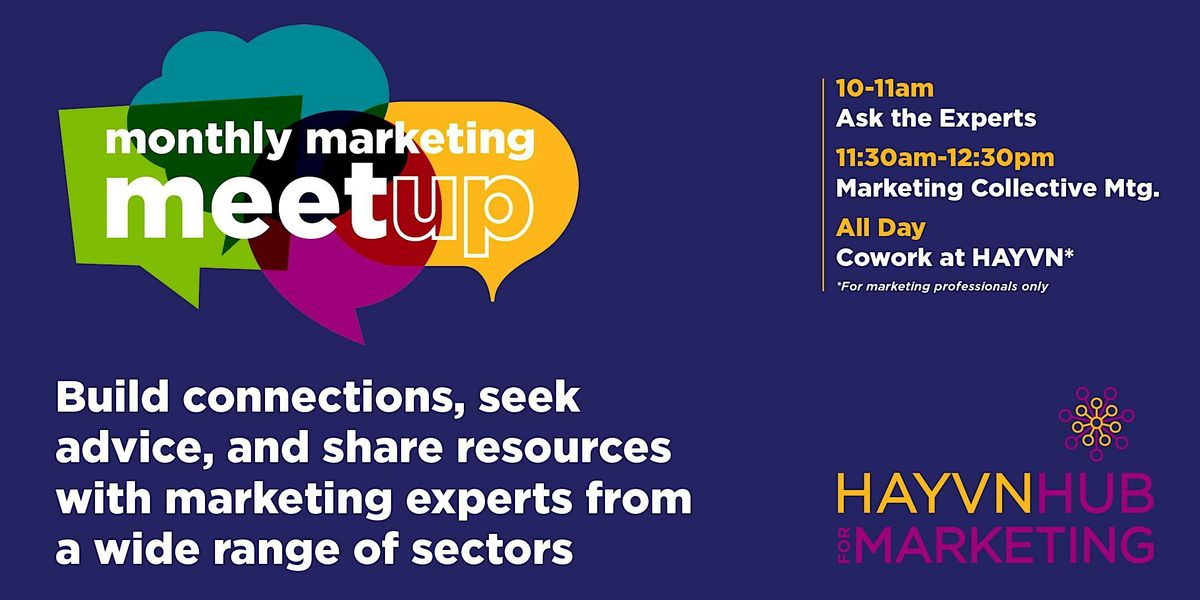 MONTHLY MARKETING MEETUPS: Ask The Experts, Mktg Collective, Coworking Day