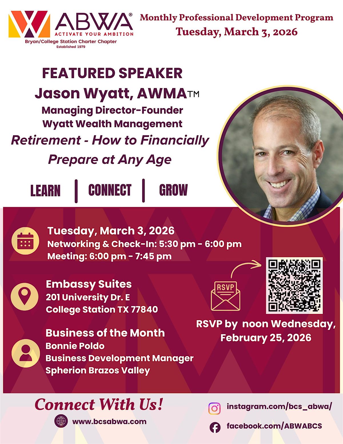 Join the American Business Women’s Association Bryan/College Station Charter Chapter for an evening dedicated to professional growth, financial empowerment, and community celebration.