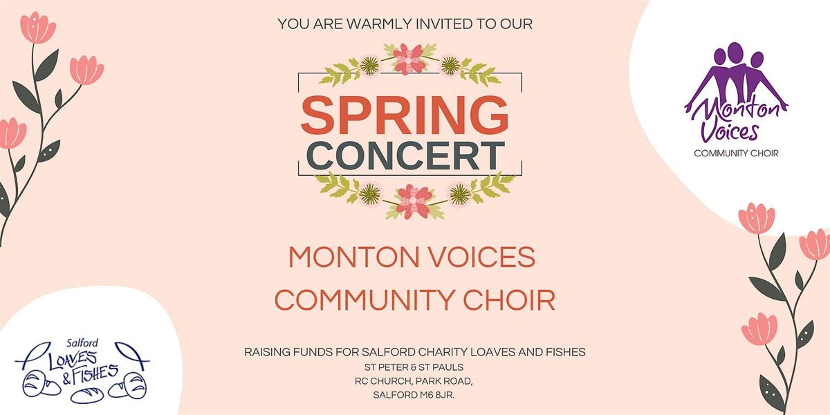 Join us in person for the Monton Voices Community Choir's lively Spring Concert! It's the perfect chance to soak up some feel-good vibes and enjoy beautiful harmonies from our local choir. Bring your friends and family for an evening of great music and community spirit. Don't miss out on this fun, uplifting event which will raise funds for local charity 'Salford Loaves & Fishes'
