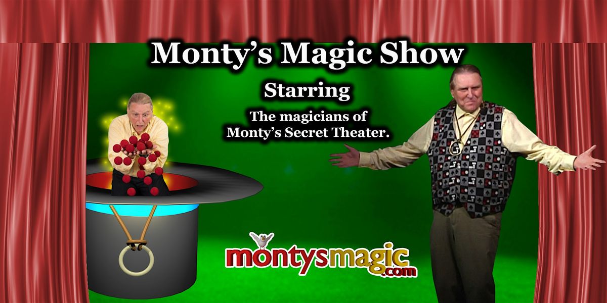 Come join us for 90 minutes of magic. See close-up magic illusions that will amaze you. Performed by Monty and the magicians of Monty's Secret Theater.