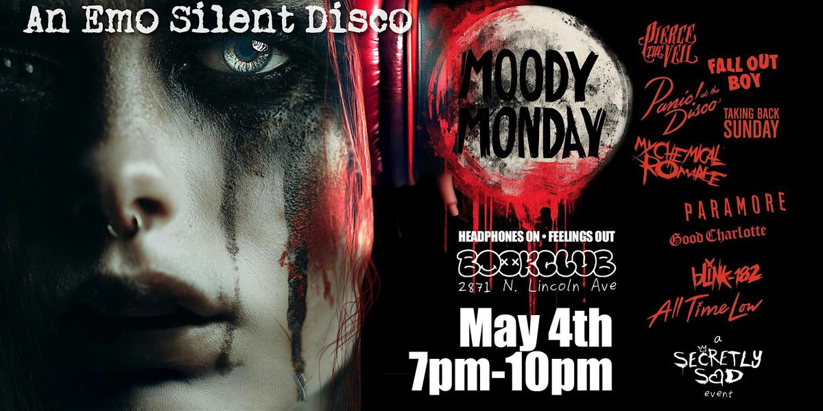 Secretly Sad presents "Moody Monday: An Emo Silent Disco." Brininging you the best emo/punk events across Chicago and greater Illinois! Join us Monday, May 4th at Bookclub Chicago for a night of moody madness!