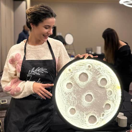Date: Select your dates directly in the ticket selector π Time: 10am - 12pm π Location: 3995 N Freeway Blvd, Sacramento, CA 95834 Description Get ready to create your own glowing moon at our Moon Glow Texture Art Workshop. beginner-friendly class where you'll sculpt, design, and light up your own moon-shaped texture wall art. You will make your lamp step by step with Lyda art studio Instructors! No art experience needed! You'll be guided through every step of the process: from plaster mixing and texture building to adding your LED light kit and finishing your moon for display. This is not just a workshop it's a soothing, hands-on experience where you'll walk away with your own dreamy, glowing moon sign. All materials included Beginner friendly Only in 2 hours make your masterpiece Take your moon lamp home Fun & creative activity for friends, couples, and families You will get the BIG (20 inch) moon