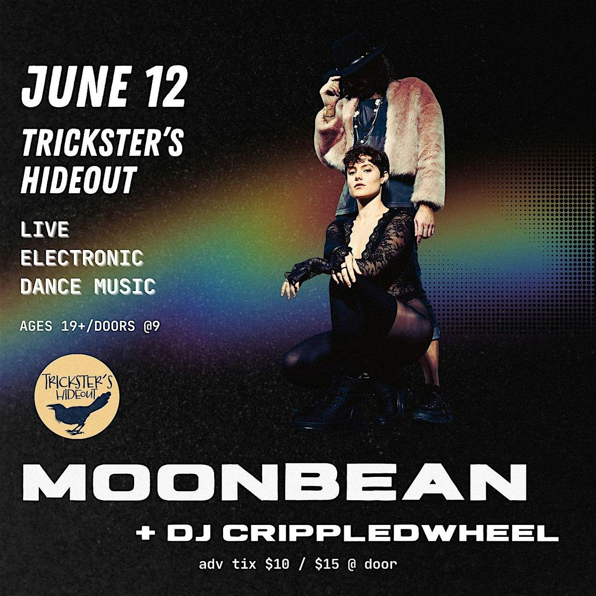MOONBEAN – an Ontario-based psychedelic electroclash duo who lace their live, synth hardware set with lush vocals. Their music explores acid-house, synth-pop, techno, disco, and their live performance gives off punk energy. Speaking to self-expression and community their lyrics weave mantras to empower their audience. Although their music is electronic, MOONBEAN plays an all-live hardware set leaving room for improvisation, experimentation and audience engagement. Their musical inspirations align with Peaches, Nine Inch Nails, Ladytron and Eurythmics. They’ve toured nationally twice and internationally thrice and headlined Hillside Festival, Folk On The Rocks, played Rainbow Trout Music Festival, Otherworld BC, Electric Eclectics, Sappyfest and many more.