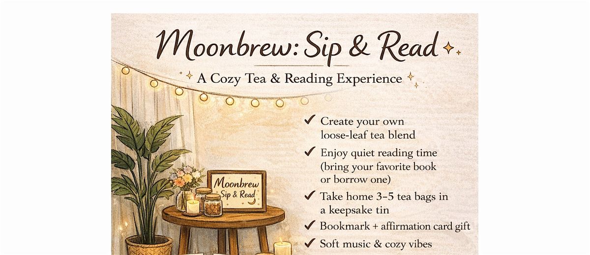 Slow down, sip, and enjoy a peaceful evening with Moonbrew: Sip & Read.