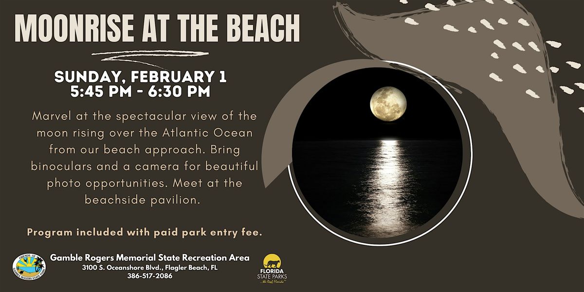 Get ready for an unforgettable evening! After learning interesting facts about the moon, watch the moon rise in all its glowing glory over the ocean from our beach approach—it's pure magic. Bring your binoculars and camera to capture the perfect shot! Meet at the beachside pavilion.! Minors must be accompanied by an adult. Regular park entrance fee applies: