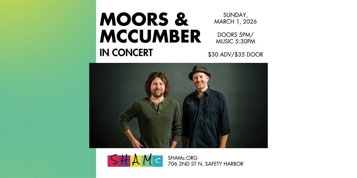 Come join us for an unforgettable evening of music with Moors and McCumber! This dynamic duo will be performing live at the Safety Harbor Art And Music Center. Get ready to be serenaded by their beautiful harmonies and incredible instrumental skills. Don't miss out on this opportunity to experience their talent up close and personal. Mark your calendars and get ready for a night to remember!