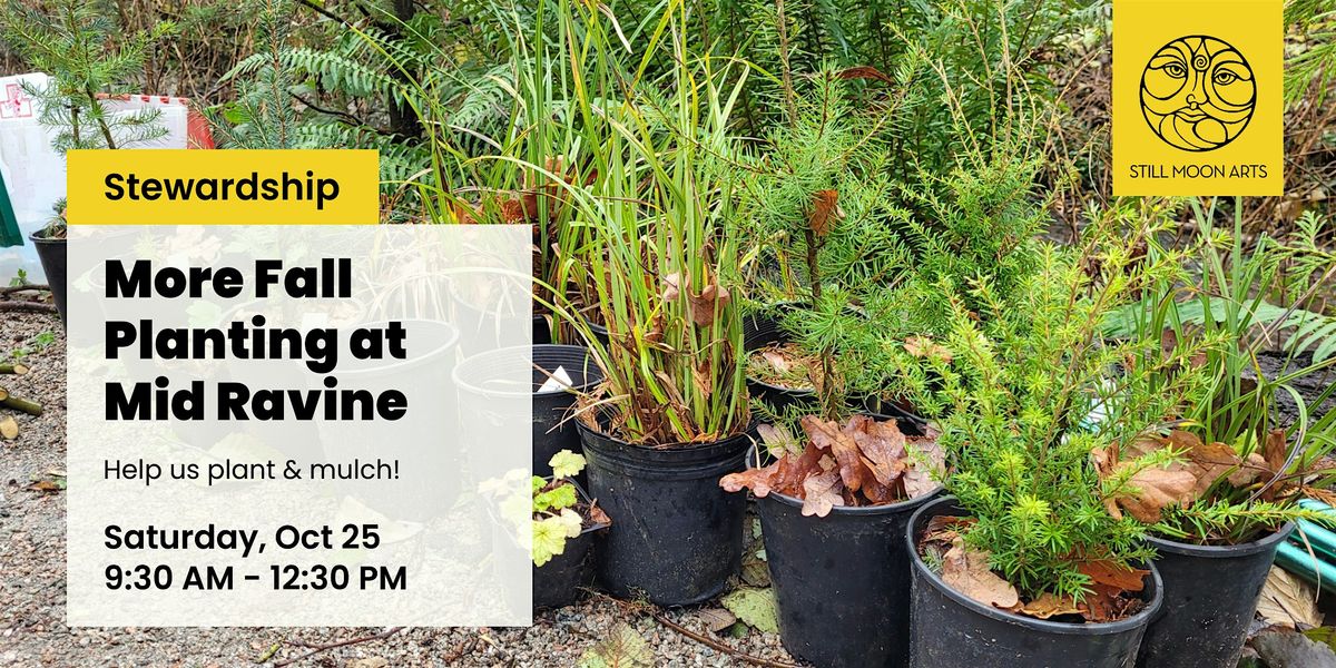 Join Still Moon for another round of planting at the Mid Ravine site! We’ve cleared lots of the dominant English ivy, Sycamore maple, and Himalayan blackberry at this site.