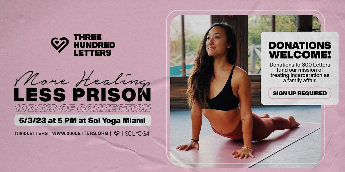 300 Letters X Sol Yoga Miami are hosting a connection experience for 10 Days of Connection by Radical Partners. This experience will allow you to reconnect, stretch and learn your body which allows us to learn ourselves more and in return make better decisions in our lives. Most people that have experienced Incarceration have experienced trauma, substance use and never had the opportunity or access to mental health or rehabilitation services. We are focused on MORE HEALING & LESS Pr*son. The U.S continues to punish instead of heal and 300 Letters is here to change that.